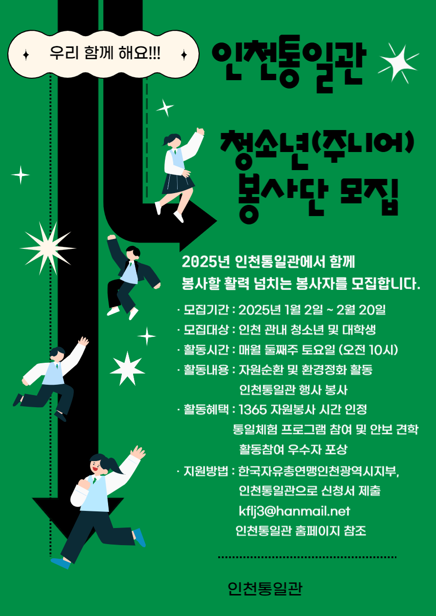 인천통일관에서는 2025년 청소년봉사단(주니어)을 모집합니다.